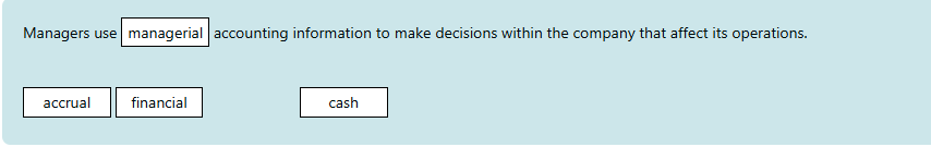 1.accounting information to make decisions within the company that affect its operations.