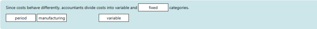 10. Since costs behave differently, accountants divide costs into variable and