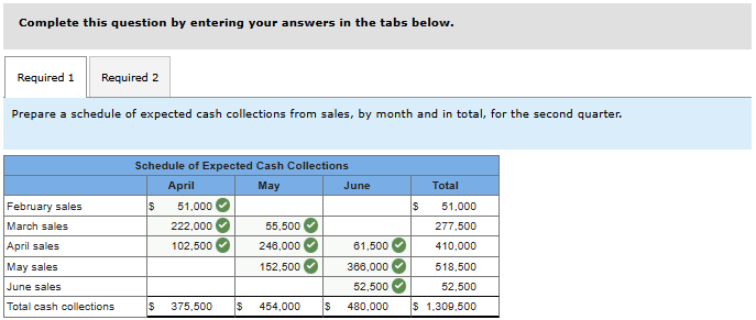 Prepare a schedule of expected cash collections from sales, by month and in total, for the second quarter.