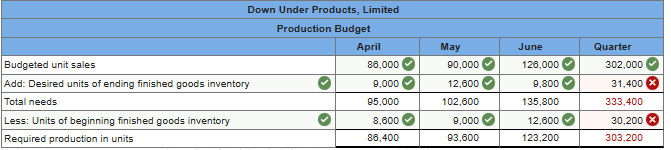 The company wants its ending inventory levels to equal 10% of the following month’s unit sales. The inventory at the end of March was 8,600 units.