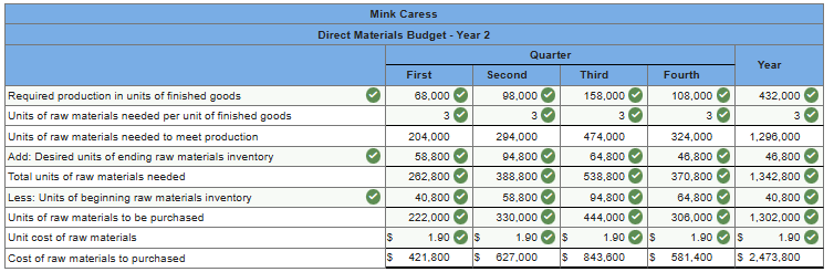 3.Three grams of musk oil are required for each bottle of Mink Caress, a popular perfume made by a company in western Siberia. The cost of the musk oil is $1.90 per gram. Budgeted quarterly production of Mink Caress is given below for Year 2 and the first quarter of Year 3: