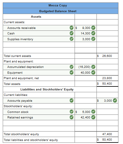9.Mecca Copy, a photocopying center located on University Avenue, provided the following data to prepare a budgeted balance sheet for next year: