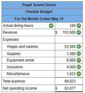 10.Puget Sound Divers provides diving services, such as underwater ship repairs, to its clients. The company’s planning budget for May appears below:
