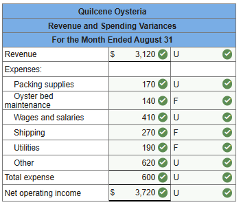 11.Quilcene Oysteria farms and sells oysters in the Pacific Northwest. The company harvested and sold 7,100 pounds of oysters in August. The company’s flexible budget for August appears below: