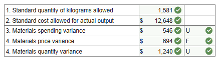 Note: For requirements 3 and 4, indicate the effect of each variance by selecting “F” for favorable, “U” for unfavorable, and “None” for no effect (i.e., zero variance). Input all amounts as positive values. Do not round intermediate calculations.