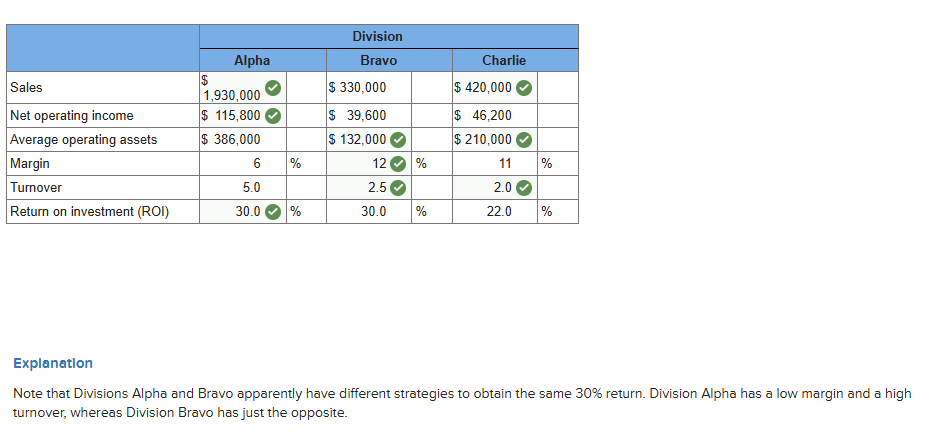 For each division, compute the return on investment (ROI).