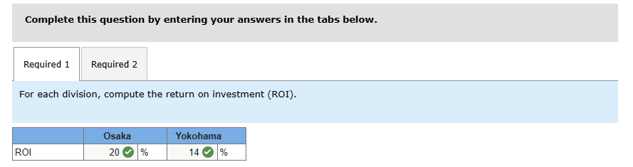 3. Tan Corporation of Japan has two regional divisions with headquarters in Osaka and Yokohama. Selected data on the two divisions follow:
