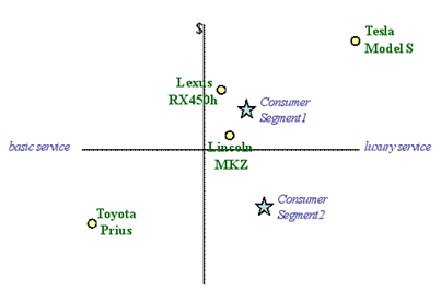 A) People in segment 1 prefer Tesla or Prius to Lincoln or Lexus.