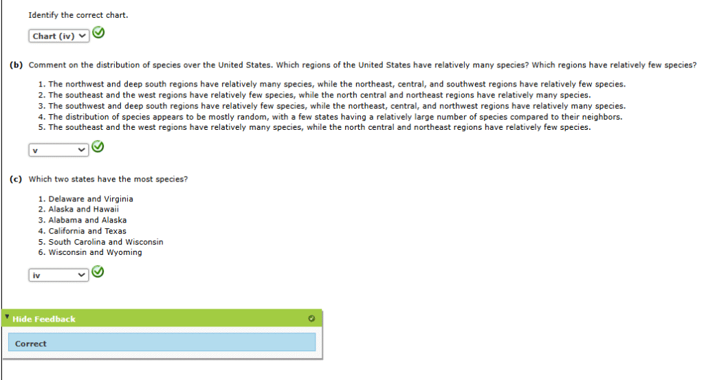 4. Ecologists often measure the biodiversity of a region by the number of distinct species that exist in the region. Nature reserves are lands specifically designated by the government to help maintain biodiversity. Care must be taken when setting up a network of nature reserves so that the maximum number of species can exist in the network. Geography matters as well, as putting reserves too close together might subject the entire network to risks, such as devastation from wildfires. The initial step in this type of planning usually involves mapping the number of species that exist in each region. The file species contains the number of unique species that exist in each of the 50 states in the United States.