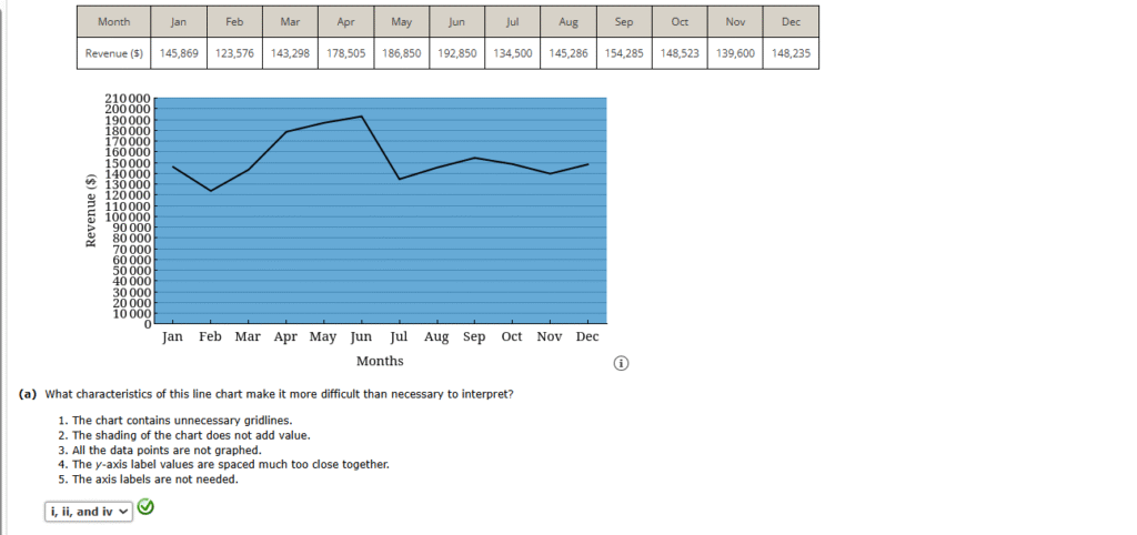 10. The following table provides monthly revenue values for Tedstar, Inc., a company that sells valves to large industrial firms. The monthly revenue data have been graphed using a line chart in the following figure.