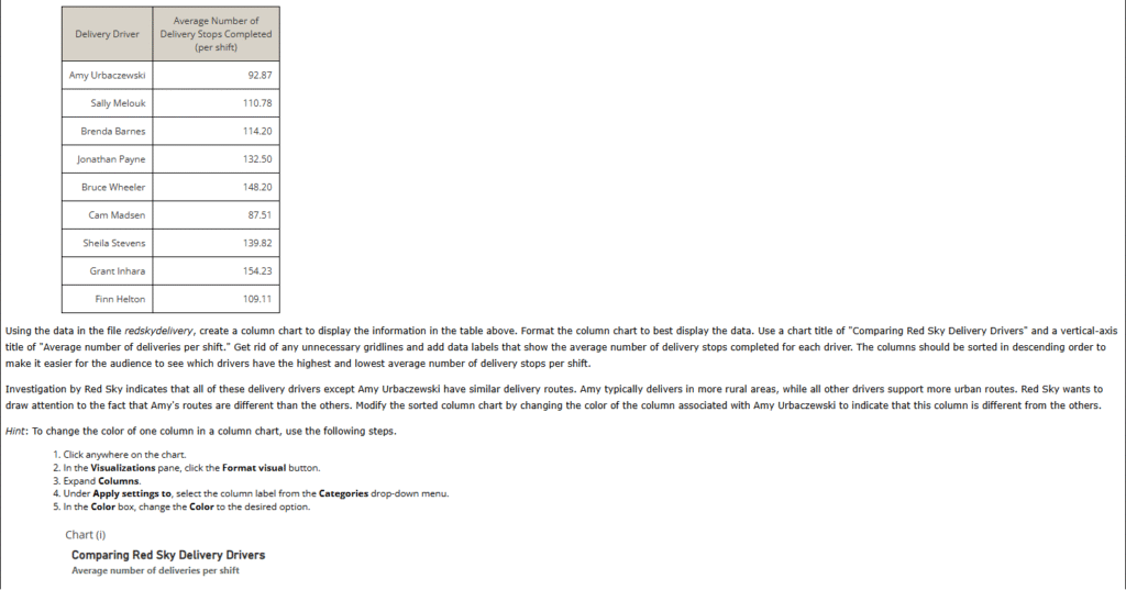 1. Red Sky Delivery performs “last-mile” delivery services for online retailers such as Amazon. Red Sky employs delivery drivers who perform the “last-mile” of delivery service by delivering packages to individual residence and business locations. Red Sky measures several delivery driver performance metrics, including number of delivery stops completed per eight-hour shift. The table below provides data on nine Red Sky delivery drivers and their average number of packages delivered per shift over the previous 30 days.