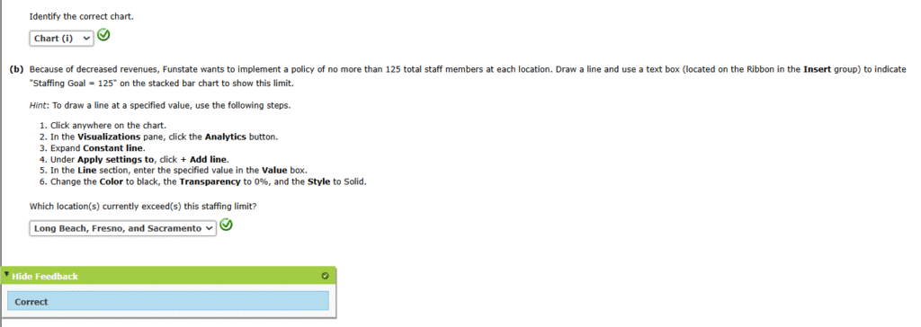 Using the data in the file funstate, create a stacked bar chart to display these data. Different colors should be used for “Male” and “Female.” Use the chart title “Funstate Carnivals Staffing Analysis,” choose appropriate axes titles, and include a chart legend to identify male versus female staff in the bar chart. Format the chart to minimize eye travel and remove any unnecessary gridlines to increase the data-ink ratio.