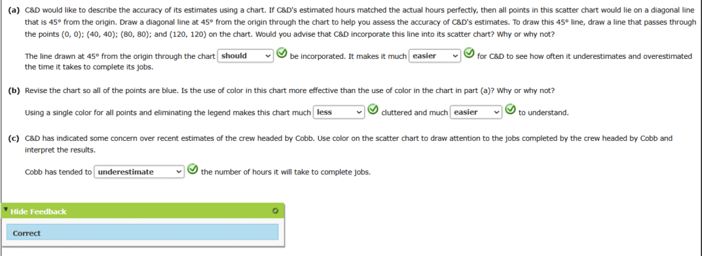 C&D has also used these data to produce a scatter chart, and it has used color to differentiate between the crews on this chart. The chart, which follows, is also included in the file canddchart. Note that the legend identifies each crew by the name of its crew leader.