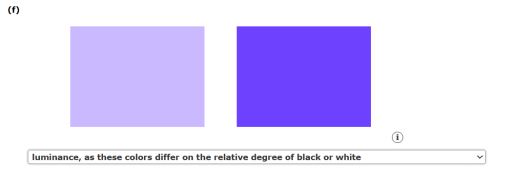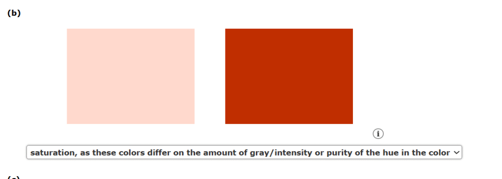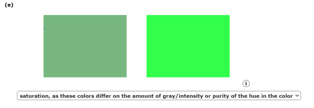 5. For each of the following statements, indicate whether hue, saturation, or luminance is being described.